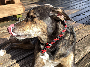 sporting his new BioThane collar