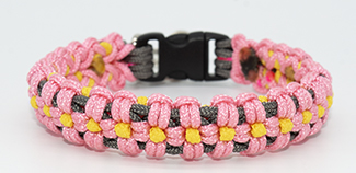 Paracord Colors: Charcoal Grey (vine); Rose Pink (flowers); Yellow (center)